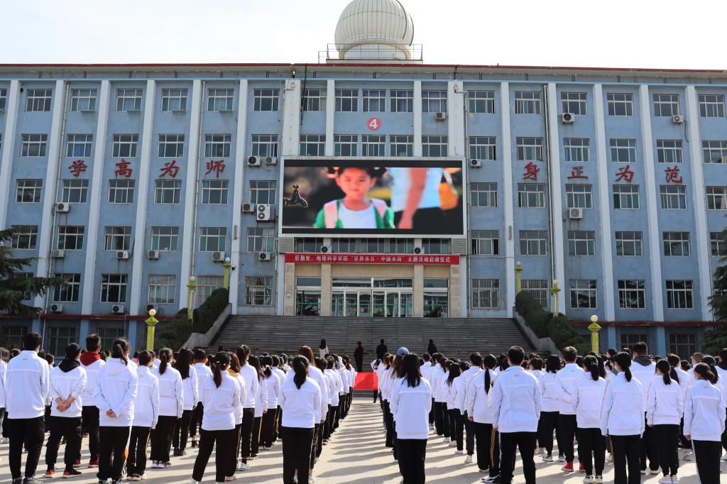 3月21日下午,我院与后勤处在巨人广场举办了2021年“世界水日·中国水周”主题活动启动仪式。院党委书记范晓东、后勤处副处长杨祥生、后勤处动力科科长贾新华、院团委副书记王亚婷及我院300余名学生参加了活动。