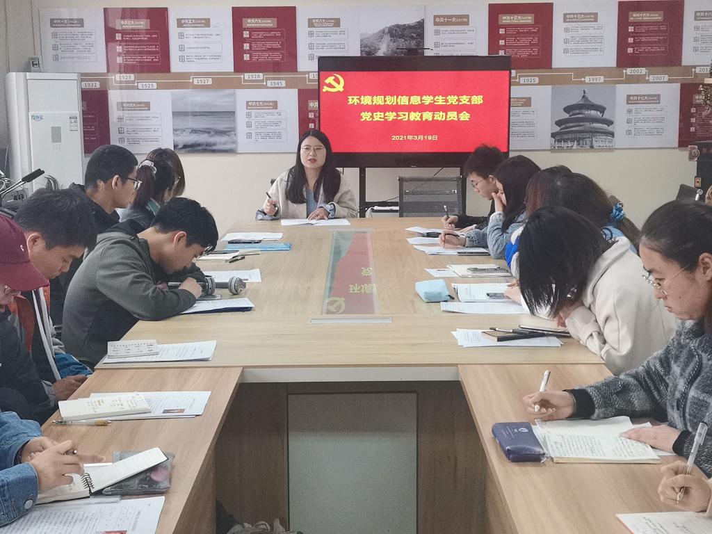 3月19日中午,环境规划信息学生党支部在04618会议室召开党史学习教育动员会。全体在校党员参加会议,党支部书记王亚婷主持会议。