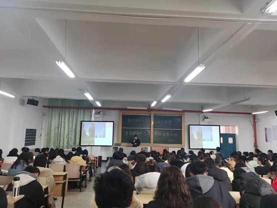 副院长王贵文致欢迎词,同学们以热烈的掌声欢迎薛光辉老师分享教学经验。