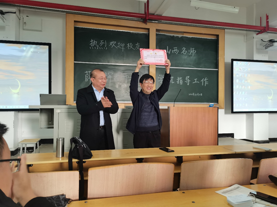 交流会接近尾声,同学们就地理教学的相关问题积极向薛老师提问,薛老师也进行了耐心细致的解答。最后,张仲伍副院长向薛老师颁发证书,王贵文副院长对此次经验交流会进行总结,同学们再次以热烈的掌声感谢薛光辉老师的分享。
