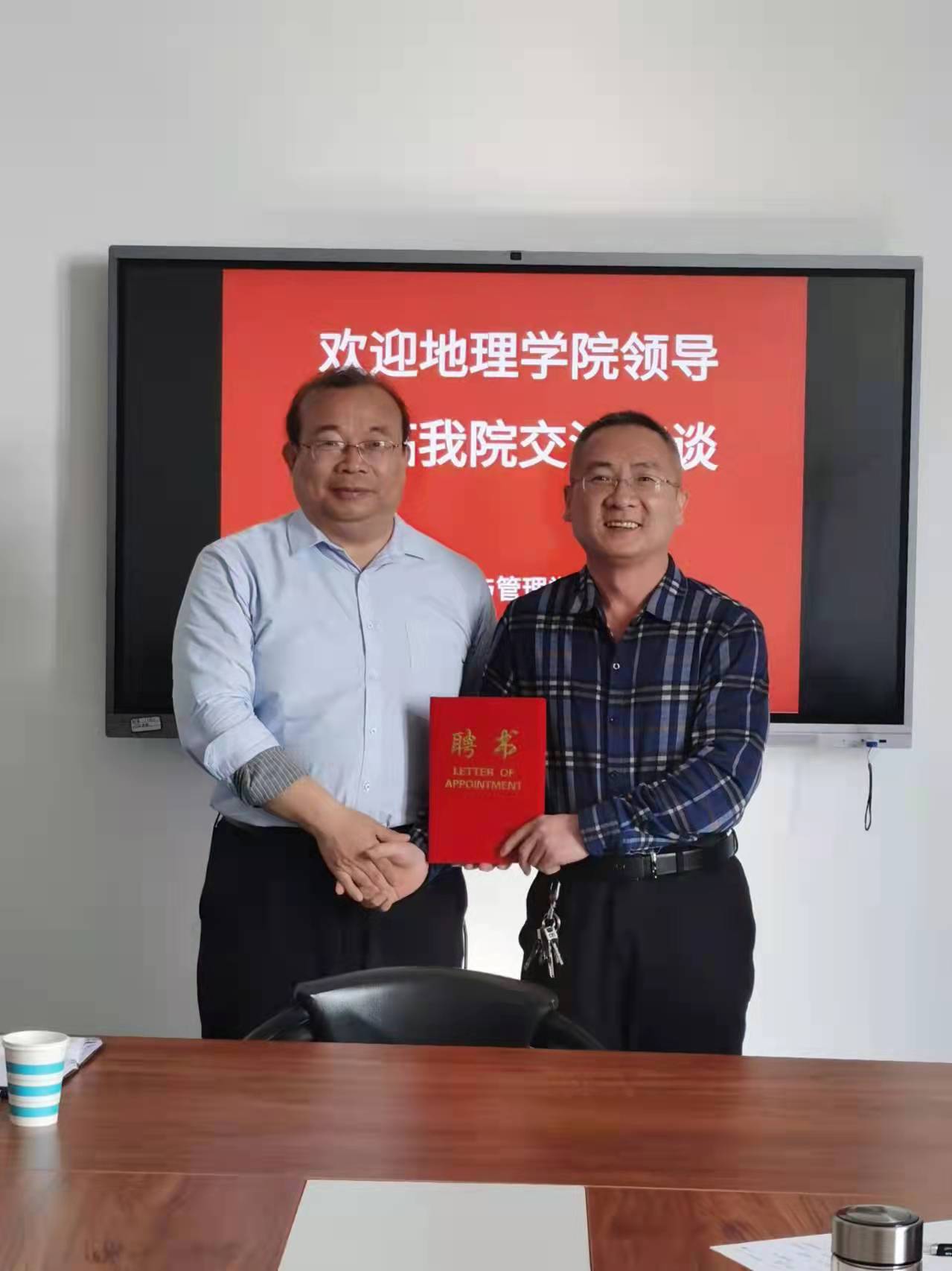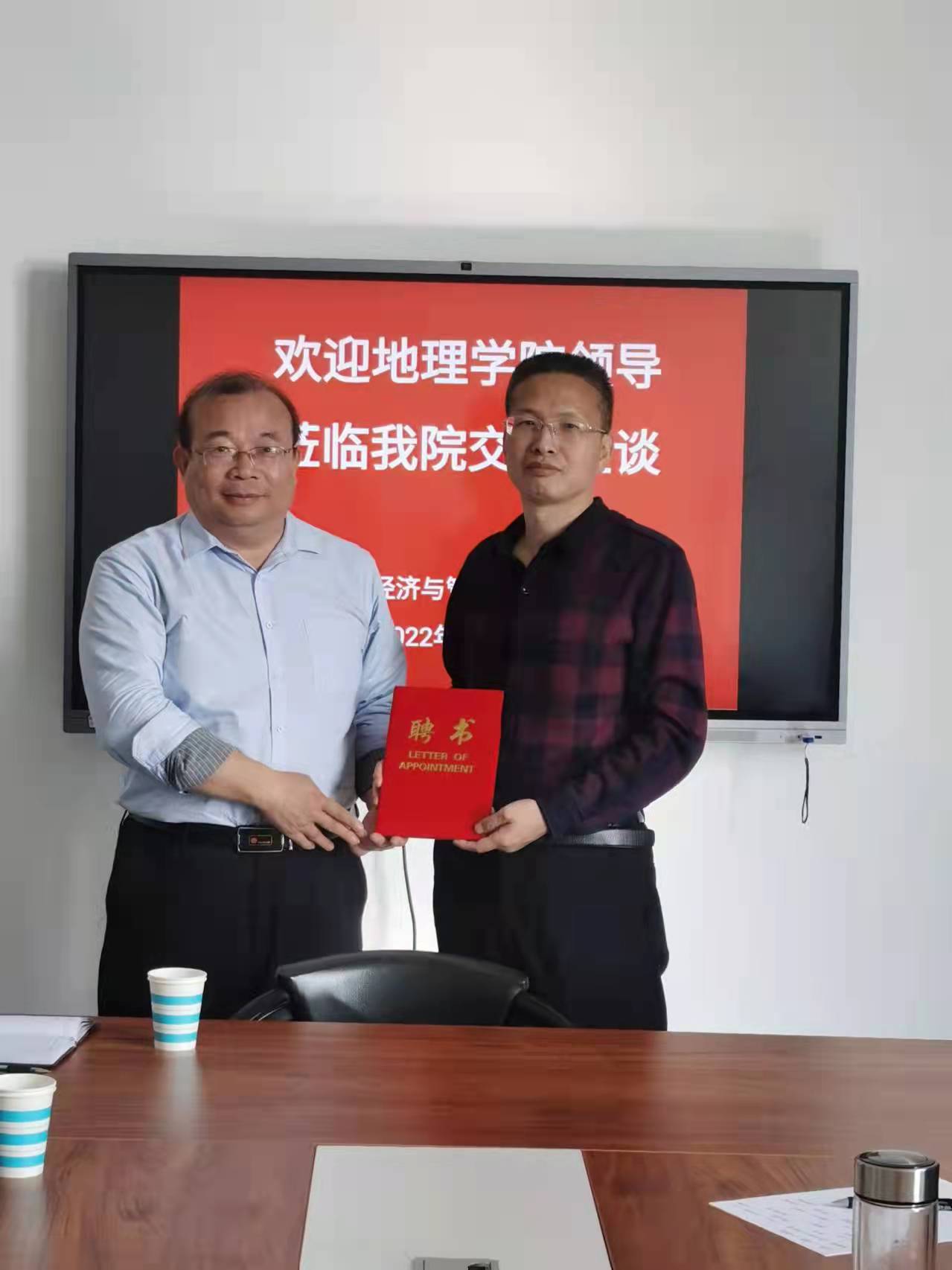 会后,地理学院向经管学院部分教授颁发了聘书,就具体下一步合作事宜进行了对接。