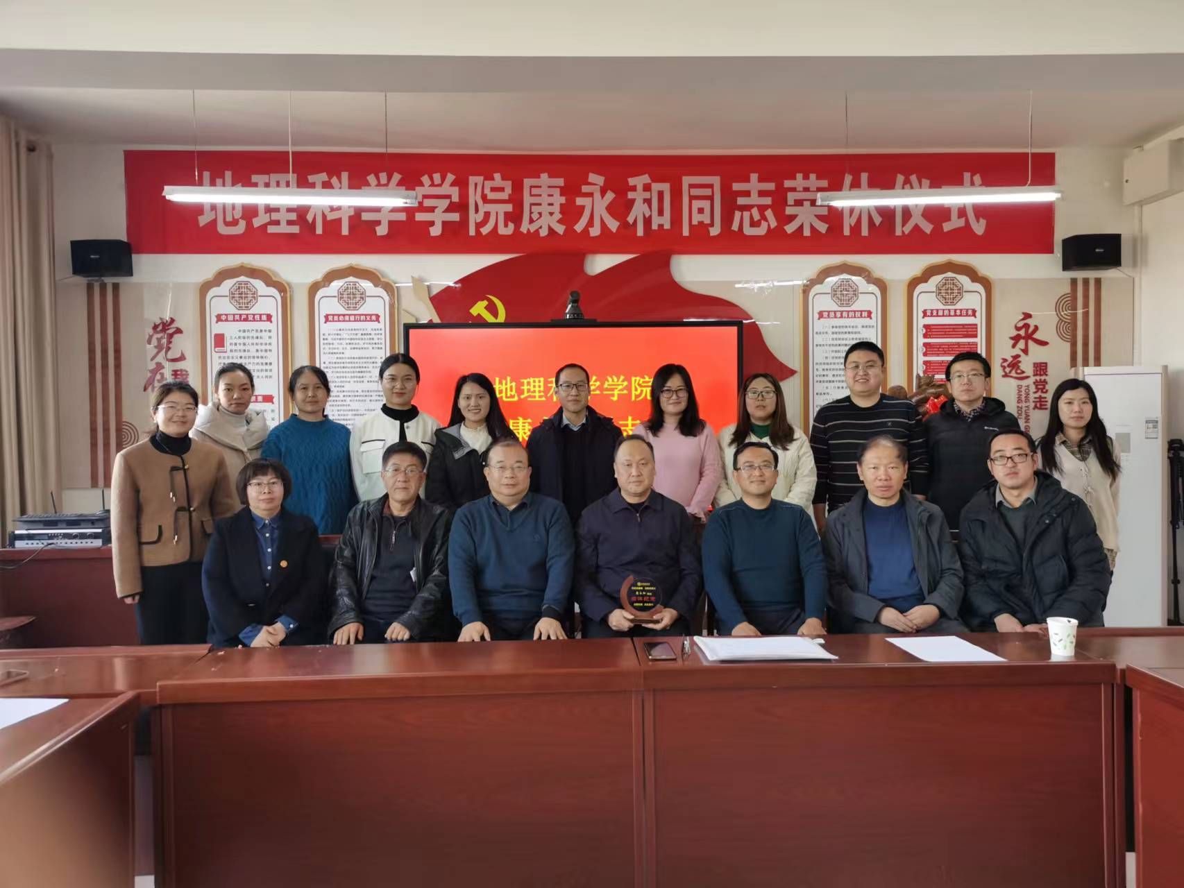 古枫吐艳,晚菊傲霜。为切实提升退休干部的政治荣誉感、工作成就感、组织归属感和生活幸福感,我院于2023年11月20日在必赢766net手机版院办402会议室为康永和同志举办了一场简单而温馨的光荣退休仪式。院党委书记刘彦宏、院长张仲伍、院党委副书记张岩青、副院长王国华及部分老师参加活动。