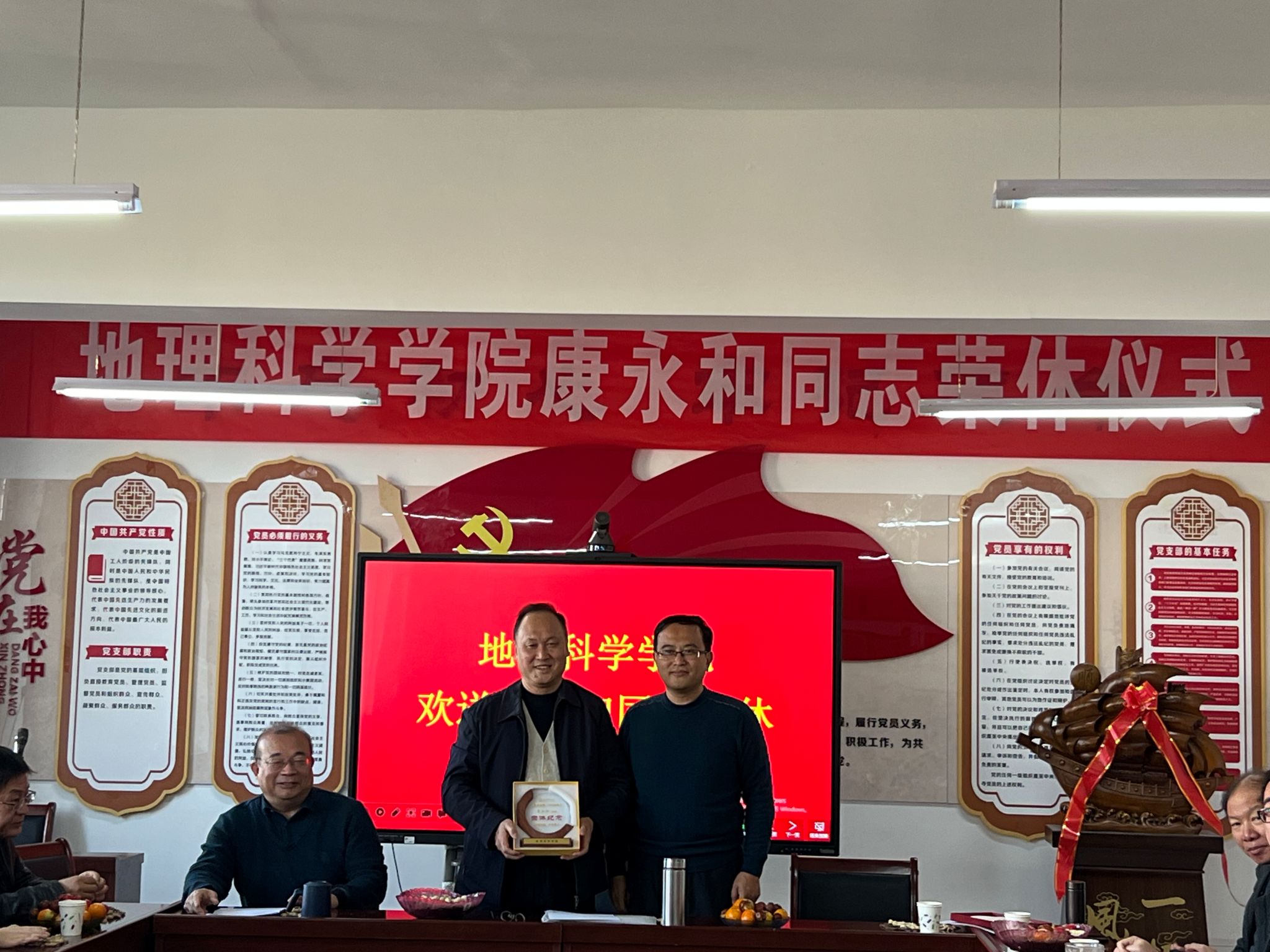 紧接着,刘彦宏书记为康永和同志颁发了“光荣退休证书”,并送上祝福。