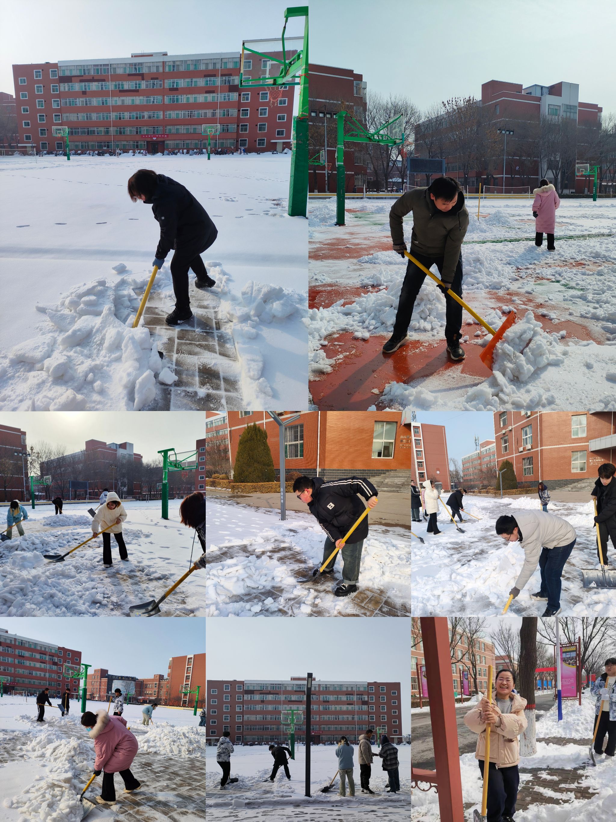 用行动“融冰”,以责任“加温”,在此次铲冰除雪活动中,必赢766net手机版师生充分展现了团结精神和奉献精神,尤其是2305班曲英杰同学带病铲雪。下一步,学院将继续关注寒潮和积雪情况,全力做好扫雪除冰、隐患排查、安全保障和学生顺利返校等各项工作,努力为营造平安校园、和谐校园、温暖校园贡献力量。