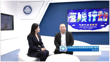 在访谈活动中,我院张仲伍院长具体从农业、工业、交通、旅游业等方面阐释了气候变化对社会经济发展的影响,并介绍了我省为应对气候变化采取的有关措施。气候变暖引起的降水极端性变化,对农业生产具有重大威胁。而极端气候引起的雾霭、高温和洪涝灾害,对经济运行产生了一定的阻碍。我省作为能源革命的排头兵,通过减污降碳、绿化覆盖,为减少碳排放和全球变暖做出了一定的努力。同时,张仲伍院长对我院在大气科学建设和气候环保行动方面所做的工作进行了相关介绍。