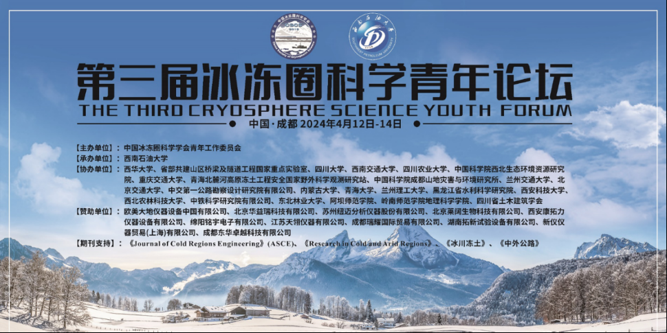 4月12-14日,由中国冰冻圈科学学会青年工作委员会主办,西南石油大学承办的“第三届冰冻圈科学青年论坛”在成都隆重召开。本次论坛围绕主题“冰冻圈科学与工程及可持续发展”,设大会特邀报告、专题分会场和研究生论坛,共组织231场报告。