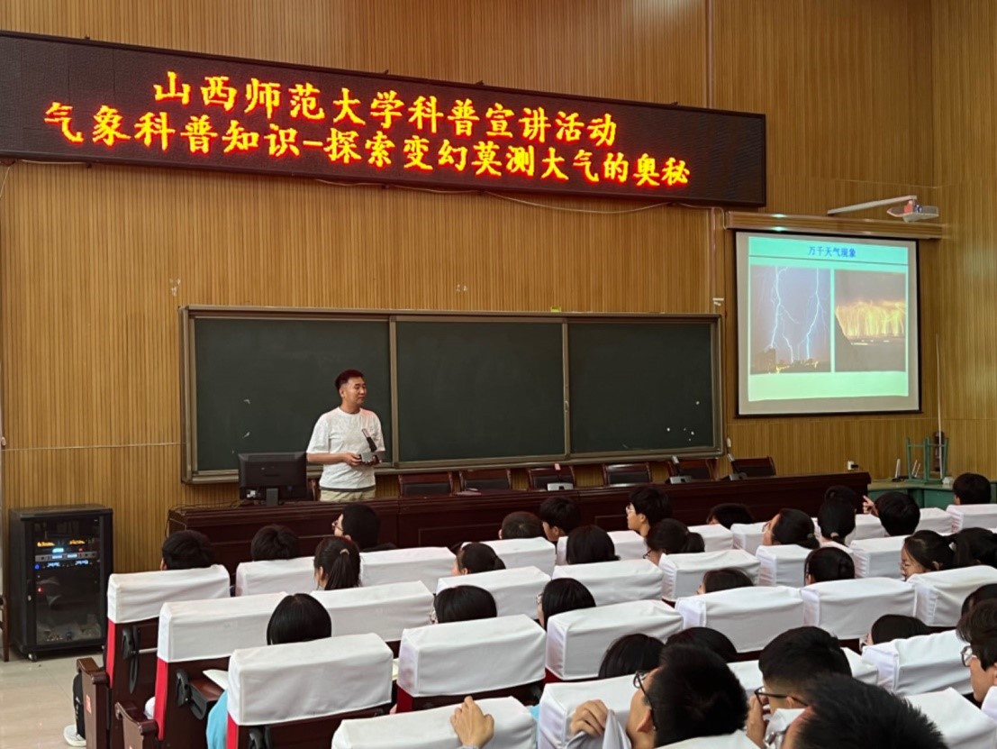 仪式结束后,我院实验室主任、硕士生导师曹富强副教授为文水中学高二学生进行了题为《探索变幻莫测大气的奥秘》的气象科普宣传活动,激发了学生探索科学奥秘的兴趣。