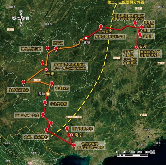 2024年7月29日,第十五届全国高校地理学联合野外实习在湖南师范大学正式开幕,我院选派崔树强老师、张伊曼与张文彦同学参加第十五届全国高校地理学联合野外实习。本次联合实习受教育部高等学校地理科学类专业教学指导委员会和中国地理学会地理教育工作委员会指导,由全国大学生地理学野外联合实践教学高校联盟、教育部全国地理学联合实习虚拟教研室,湖南师范大学、贵州师范大学和南宁师范大学联合主办,于2024年7月28日至8月12日在湖南省、贵州省和广西壮族自治区相继开展。本次联合实习的主题为“城湖山江海、寻道湘黔桂”,将以西南地区中国第二、三级阶梯过渡带为分界,着重考察江南丘陵、洞庭湖平原、云贵高原、广西沿海地区湿地景观、张家界地貌、喀斯特地貌、海岸地貌等自然地理景观及相关人文地理现象,实习历时16天,总行程约2500公里,共有来自全国各地的52所高校的200多名师生代表参加。