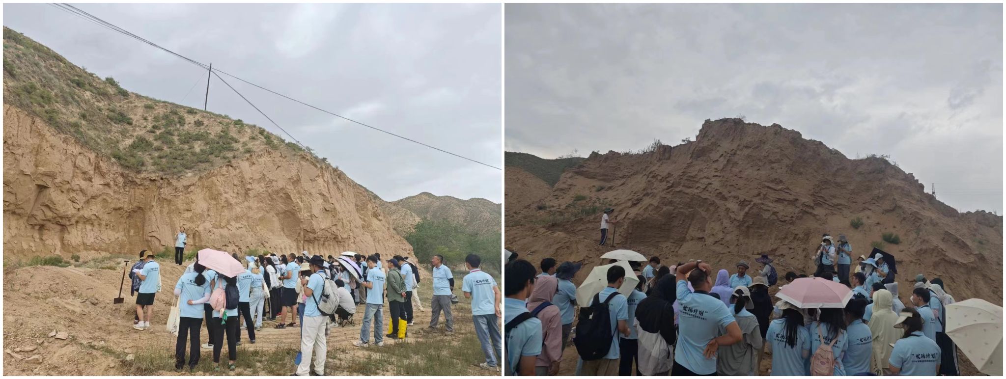 下午来到了实习第一站兰州九州台,兰州大学资源环境学院的李卓仑老师负责本次野外讲解,李老师主要讲授了基座地貌的识别方法,引导同学识别出九州台为上层黄土、中间砾石层、下层黄土的基座类型,就不同地层的形成环境与原因进行了深入讲解,并讲授了兰州盆地河流阶地的成因。