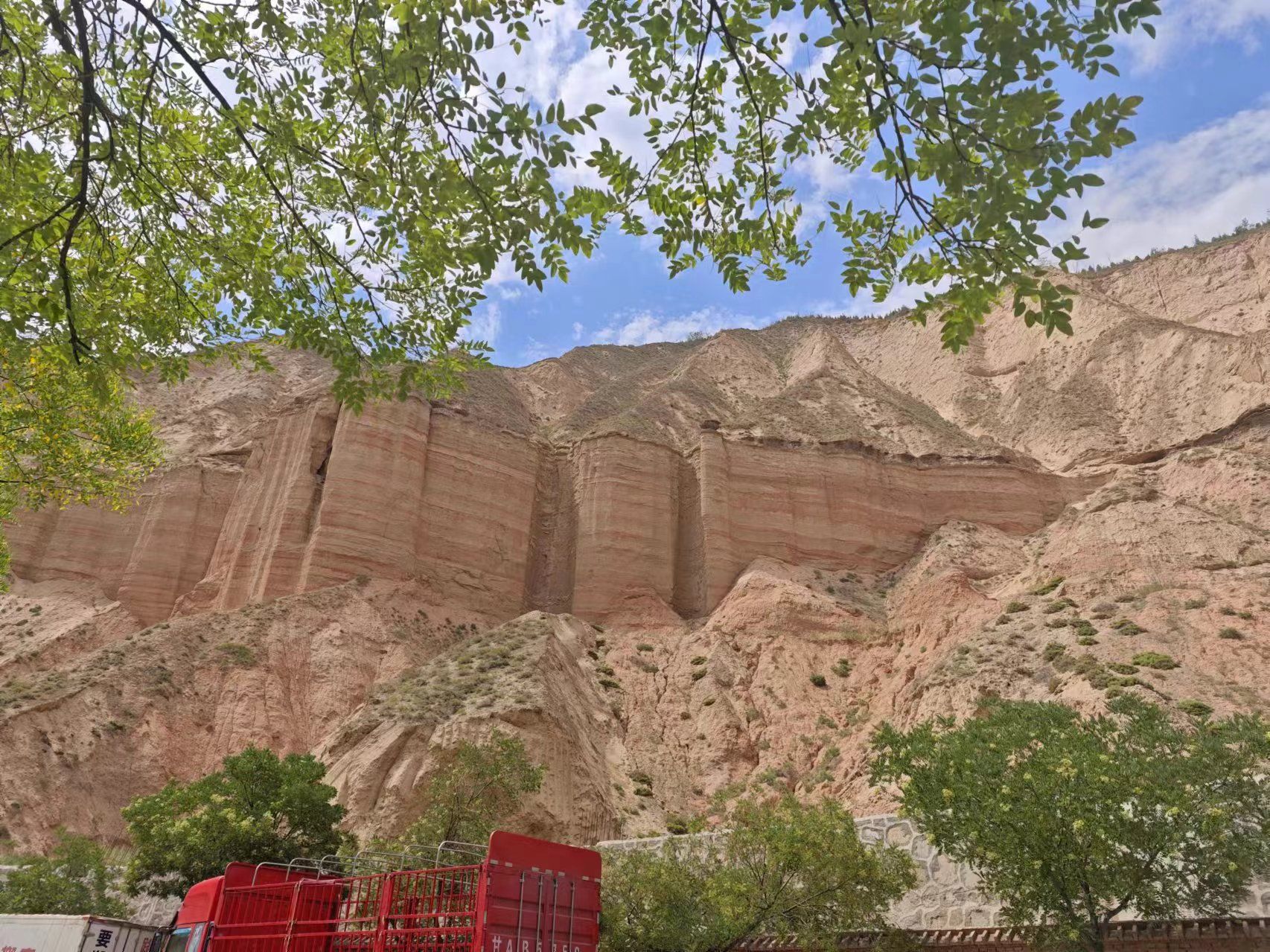 上午,联合实习的全体师生从武威出发历经4个小时左右车程,一路风尘仆仆来到了位于祁连山口的莺落峡,西华师范大学的何雨栗老师给我们讲解了年代地层单位和地质地层单位,并就该区域的火山碎屑岩和逆掩断层进行了讲解。