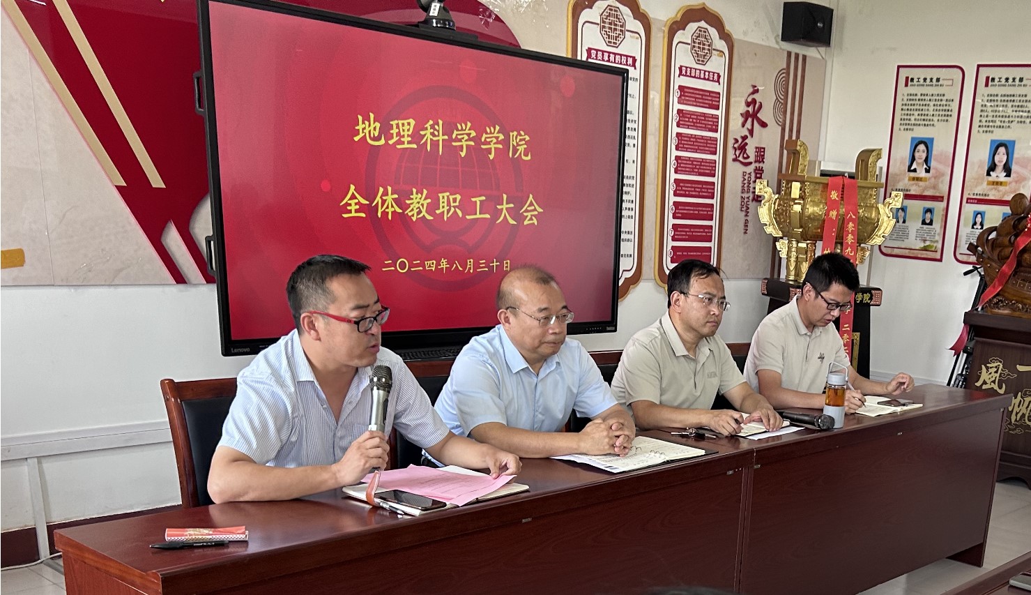 解毅副院长在讲话中简要介绍了学院在职称申报方面的工作进展,并鼓励全体教师关注科研动向,积极推动科研课题的开展。他表示,学院将继续推进平台建设,努力提升学院在地理学领域的科研水平与影响力。