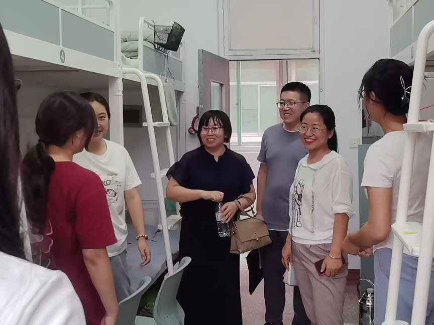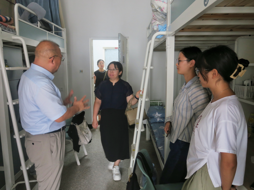 院领导们在各新生辅导员的陪同下,逐一走进学生宿舍。每到一间宿舍,院领导都与新生们亲切交谈,详细询问他们来自哪里、对学校的环境是否适应、入学后的感受以及在生活中遇到的困难等。面对院领导的关心,新生们纷纷积极回应,宿舍里洋溢着温馨的氛围。