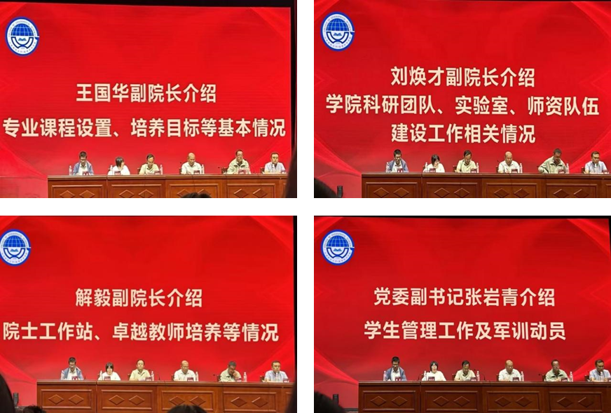 副院长刘焕才、副院长解毅分别从科研团队、实验室、师资队伍、院士工作站、卓越教师培养等方面展开介绍。他们以成功的案例、严谨的数据和美好的前景,向同学们提出了宝贵的建议,指明了发展的方向,使同学们受益匪浅。随后,党委副书记张岩青就学生管理工作暨军训动员做出指导,强调了在军训期间要遵守纪律、听从指挥,在日常生活中,遵守学风学纪,时刻警醒自己,以拼搏之姿书写青春华章,不忘初心牢记使命,争做时代新青年。