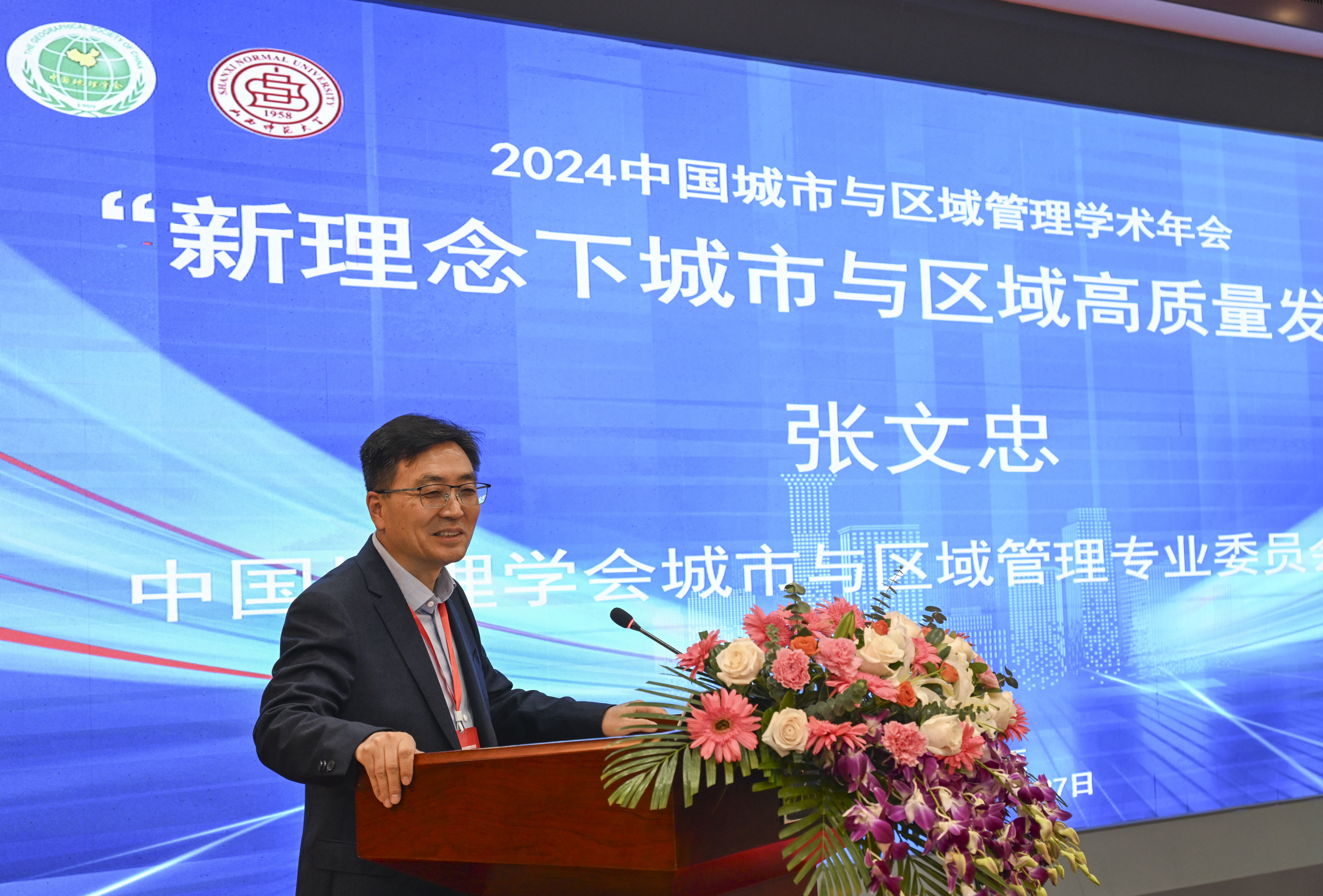 中国地理学会城市与区域管理专业委员会主任张文忠代表中国地理学会城市与区域管理专业委员会对会议承办单位、协办单位、与会学者以及有关方面的支持表示感谢,并希望与会专家围绕主题深入交流,积极研讨,为推动新理念下城市与区域高质量发展贡献力量。