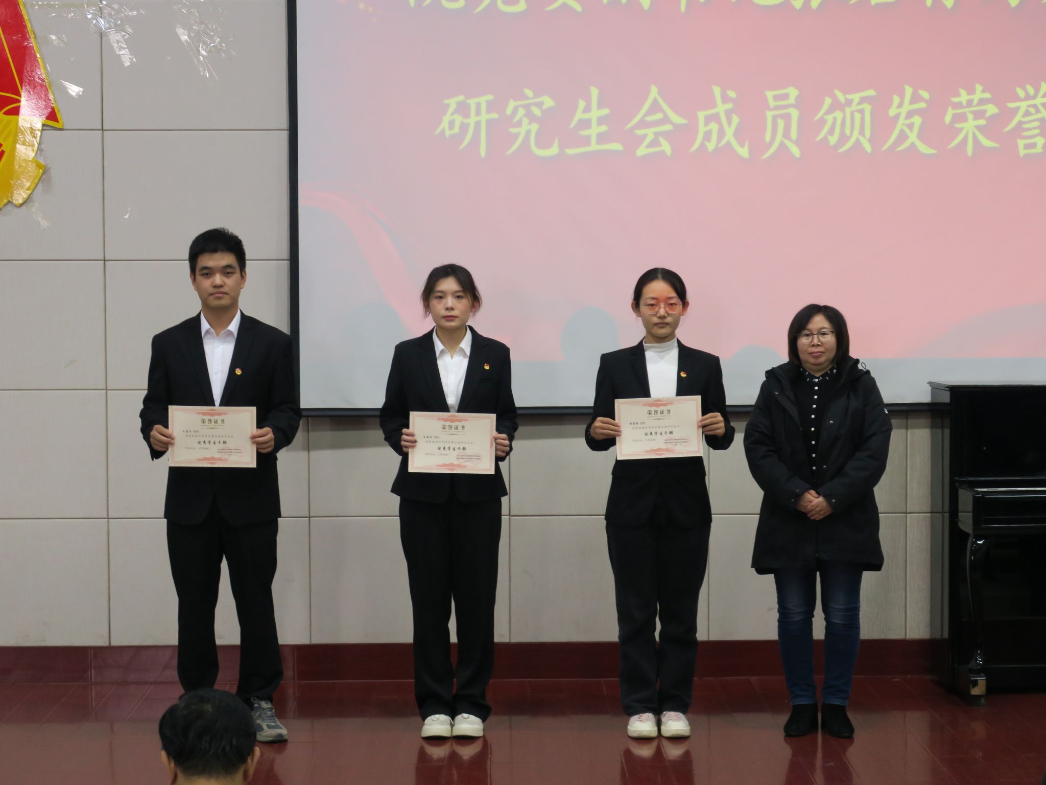 随后,院党委副书记张岩青老师为第五届研究生会优秀成员颁发荣誉证书。
