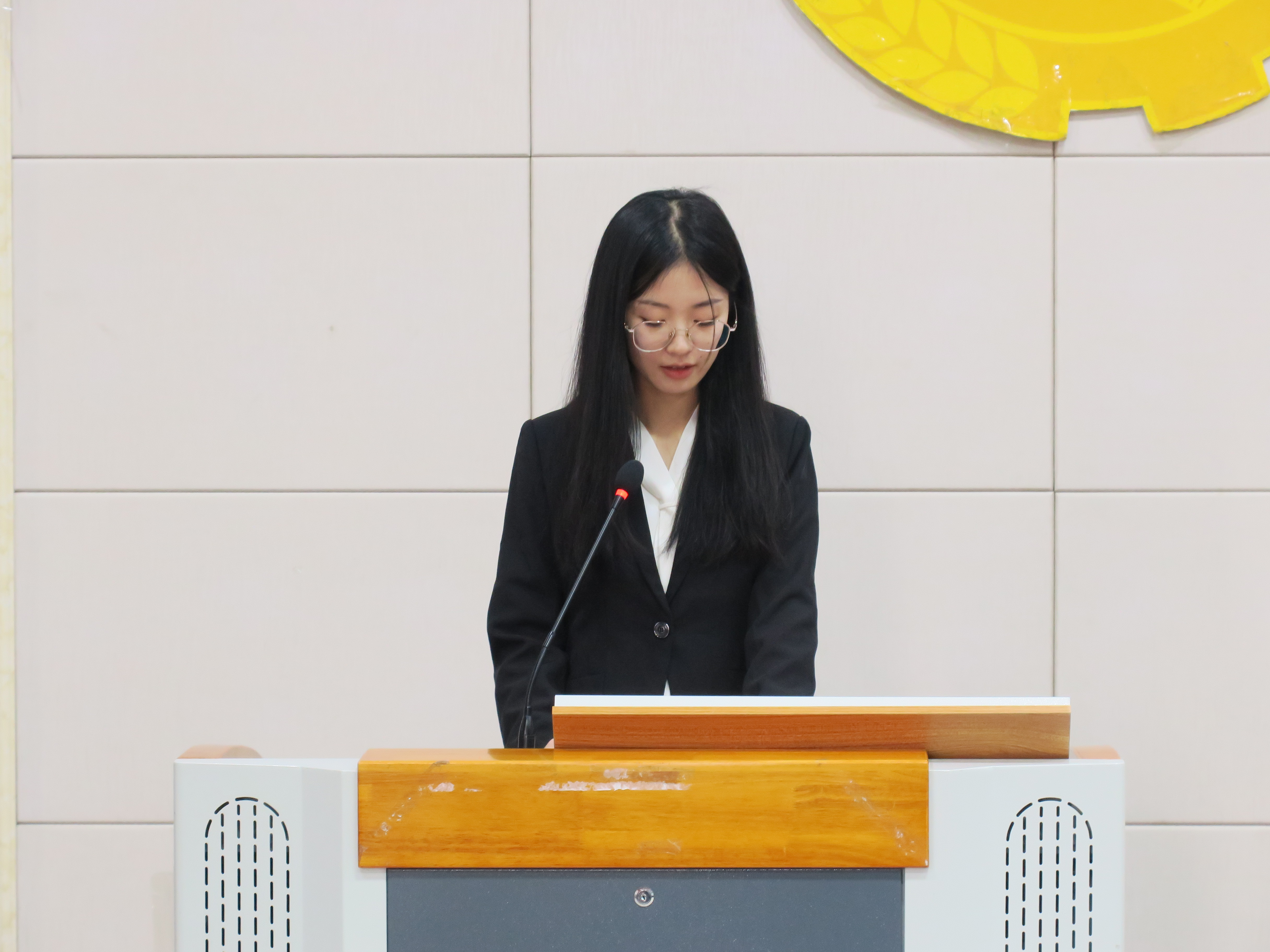紧接着,第六届研究生会执行主席田宇琪代表新一届研究生会成员作表态发言。她代表研会对关心研究生会工作的领导、老师以及校研究生会和各兄弟学院研究生会表达了感谢,并表示新一届全体研究生会成员将会继续提升工作能力,强化组织建设,丰富校园生活,更好地服务于我院师生,进一步提升研究生会在同学们中的影响力,积极开创我院研究生工作新局面,推动学生工作进一步向好、向优发展。