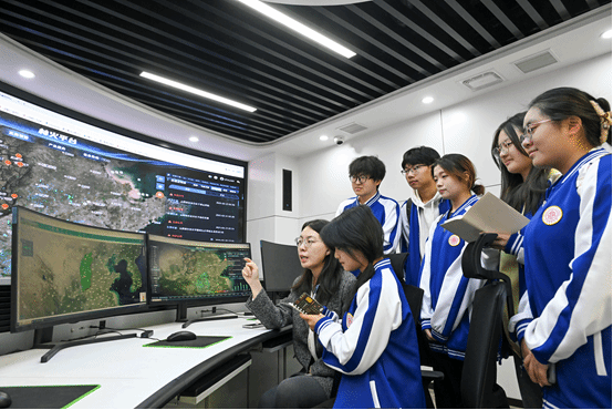 在工作人员的热情引导下,同学们参观了山西省气象服务中心专业服务科。巨大的屏幕上展示着实时的气象卫星云图、雷达回波图,气象专家现场讲解了如何根据这些复杂的数据和图像进行天气形势分析。通过数值预报模型的演示,同学们了解到看似简单的天气预报背后,蕴含着庞大的数据运算和专业人员的精准判断。又通过自然灾害监测预警平台上高精度的传感器和智能监测设备,能够实时看到收集降雨量、水位、林火、气象等关键数据,并借助先进的数据分析算法,快速准确地判断自然灾害的发生可能性及发展趋势。一旦监测到异常情况,平台会立即发出预警信息,为相关部门和民众争取宝贵的应对时间。