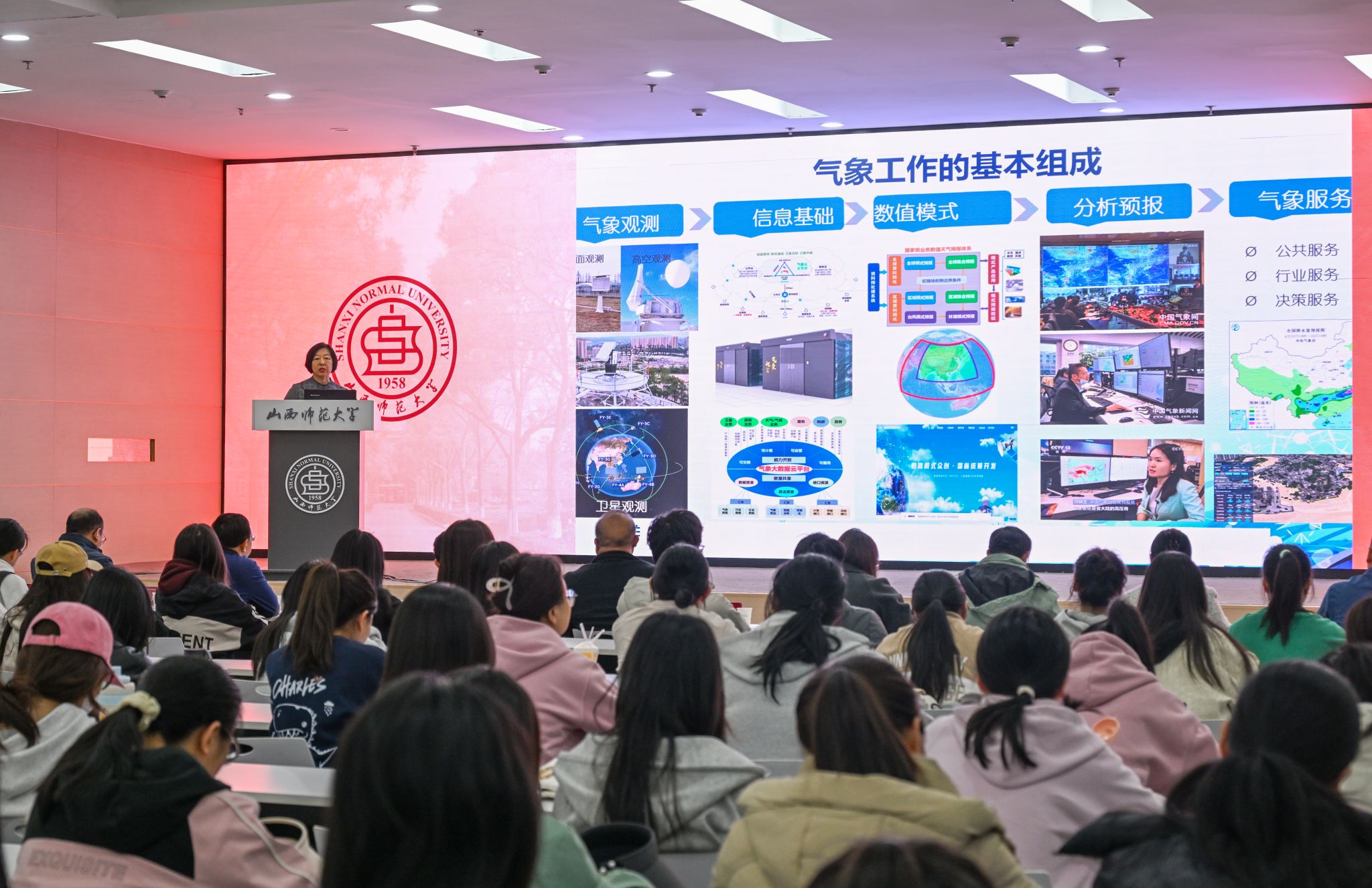 为推动我院学科高质量发展,促进我院与山西省气象局深入合作交流,4月3日,我院特邀山西省气象局总工程师王智娟作题为《气象高质量发展与天气预报》专题报告,围绕"气象高质量发展与天气预报技术前沿"展开深度交流。报告会由我院院长张仲伍主持,学校党委副书记王志强、山西省气象学会秘书长杨培峰,学院党委书记刘彦宏、党委副书记张岩青等院领导出席,与大气科学专业师生、其他专业师生代表及研究生代表近200人共赴学术盛宴,共享气象业务前沿进展。