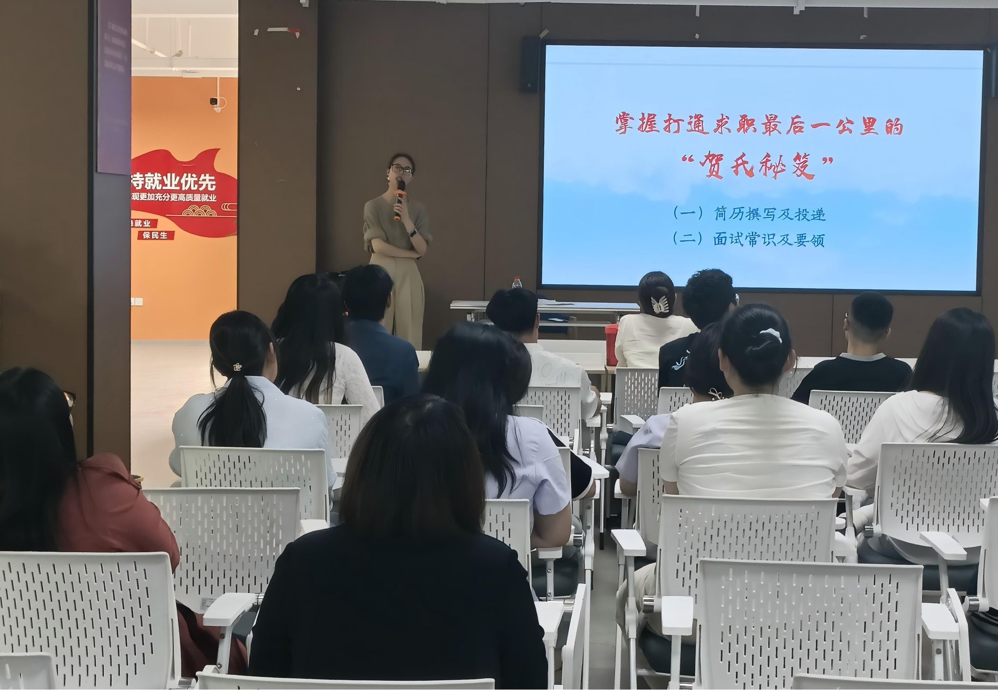 此外,学院还邀请了一览公司资深高级职业导师贺青莲老师为学生们带来专业指导。贺老师凭借其丰富的行业经验和深厚的专业功底,剖析了当前就业市场形势,为学生们提供了清晰的就业趋势分析。在简历指导环节,贺老师更是倾囊相授,分享了诸多实用技巧,从内容的精准提炼到格式的精心设计,每一个细节都进行了细致指导。