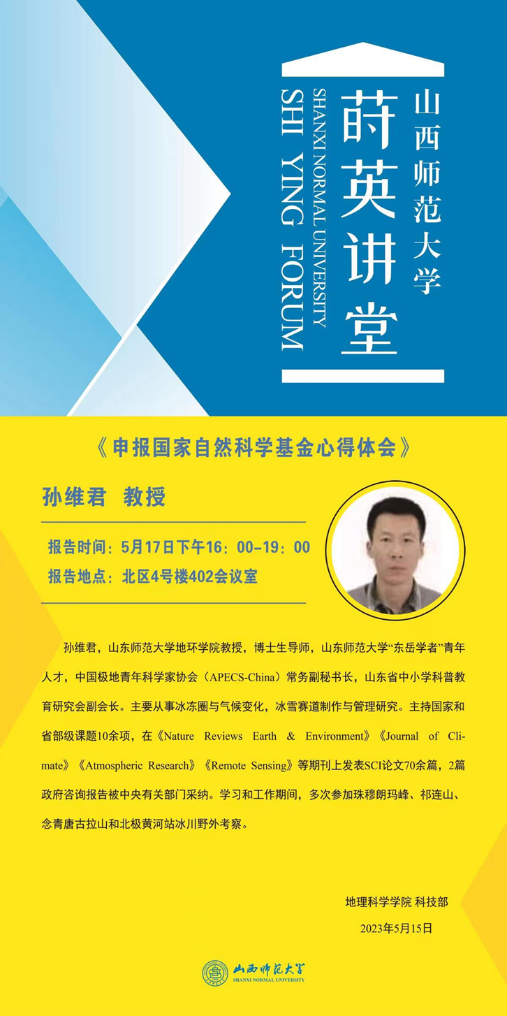 【预告】山东师范大学地环学院孙维君教授应邀来我院做学术报告