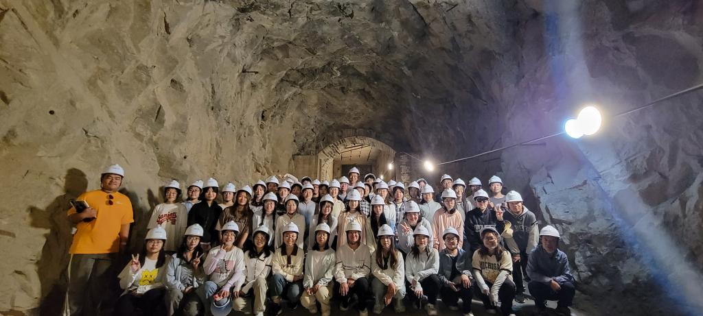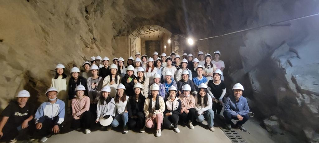 实践带队老师讲解洞内地质知识,并带领学习岩石类型及构造等。