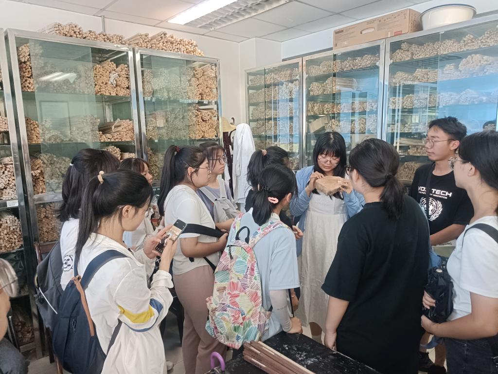 随后,实习队前往了兰州大学资源环境学院,同样分为两个小组,在潘燕辉、曹辉辉老师的带领下,分别参观了西部环境教育部重点实验室的几个实验室,包括:树轮学实验室、环境考古实验室、年代学实验室、古地磁和环境磁学实验室、地球化学实验室、矿物岩石学实验室、微体古生物学实验室,兰州大学参观结束。