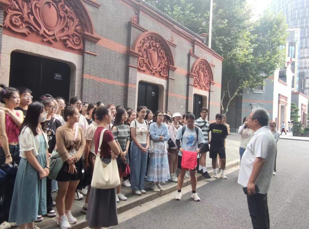8月24日师生一行人开展了集体实习内容。“明镜所以照形,古事所以知今。”实习的第一站是中国共产党第一次全国代表大会纪念馆,大家首先来到中共一大会址,这是一幢典型的石库门建筑,是一大代表李汉俊和他的哥哥李书城的寓所。1921年7月23日,中共一大在这里召开。紧接着,大家来到纪念馆内。中国共产党第一次全国代表大会纪念馆于1952年成立,与中共一大会址一街之隔,在《伟大的开端》基本陈列展厅中,大家在讲解员的带领下参观了展厅的7个板块,这里综合采用多种展示手段,使同学们全面系统地了解了中国共产党的诞生历程。