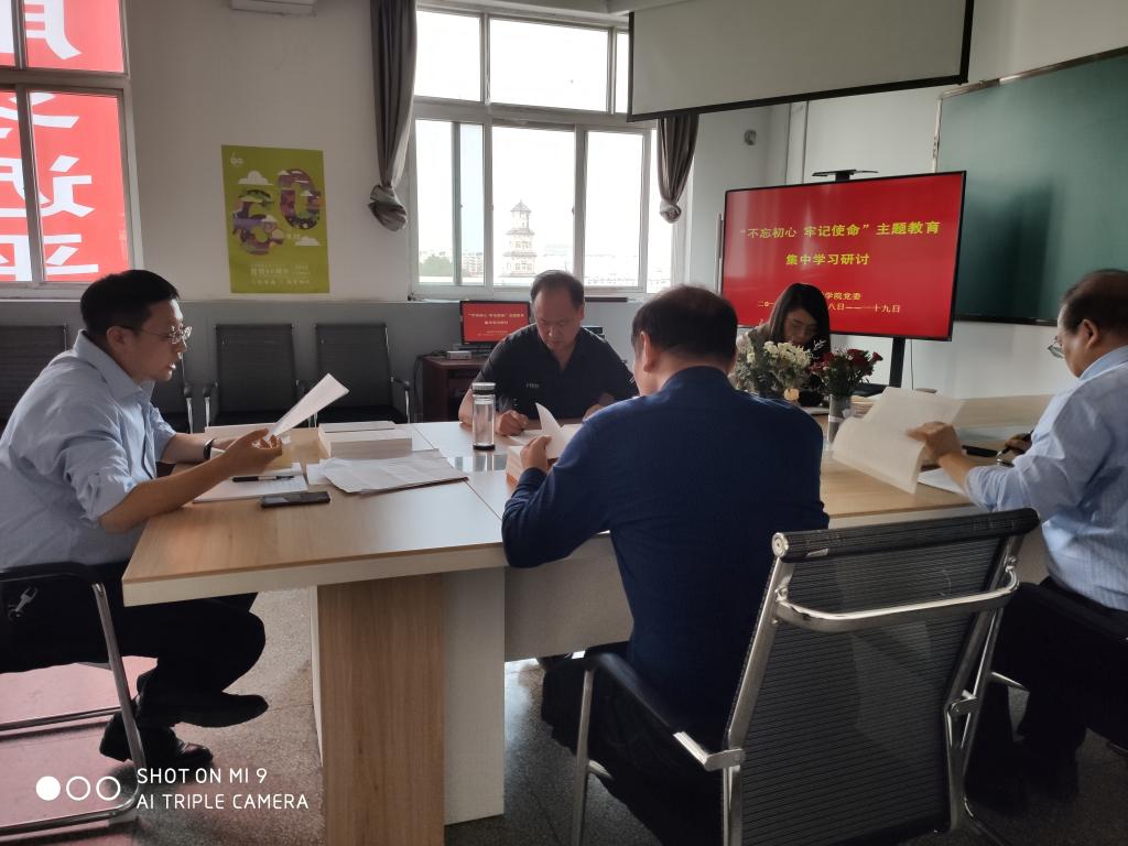 院党委书记范晓东强调了“不忘初心、牢记使命”主题教育的重要意义,要求全体成员认真学习、深刻反思,突出问题导向,结合工作实际,摆问题、找差距、抓落实,切实把思想和行动统一到党中央、省委和学校的决策部署上来,以高度的政治责任感和使命感推动主题教育的高质量开展。随后,他围绕“自我革命”“政治建设”和“从严治党”,结合具体事例,表达了自己的认识和体会。院长张永清以理想信念和党的宗旨性质为依据,指出党员应通过学习认识到坚定理想信念的重要性,不断增强“四个意识”,做到“两个维护”。副院长张仲伍通过回顾中国共产党历史指出,在新的历史条件下,党员同志在工作中应该要不计较个人得失,勇于担当,积极响应党的号召,勇挑重担,坚定信念,脚踏实地。团委副书记王亚婷从政治纪律和政治规矩基本要求入手,结合学生工作实际,认为党员同志要勤于学、慎于言、笃于行,不断磨练意志品质,锻造过硬作风,提升能力本领。院办公室主任张岩青主要围绕理想信念及党性修养,表达了对共产党人初心、使命的认识,并鼓励大家牢记初心,砥砺前行。副院长王贵文作为党外人士积极参加了研讨,根据所学习的中国共产党党员先进事迹,交流了对“两弹一星”孙家栋、“时代楷模”李保国以及黄大年先进事迹的看法,并鼓励年轻同志要不懈努力,为建设祖国奋斗终身。