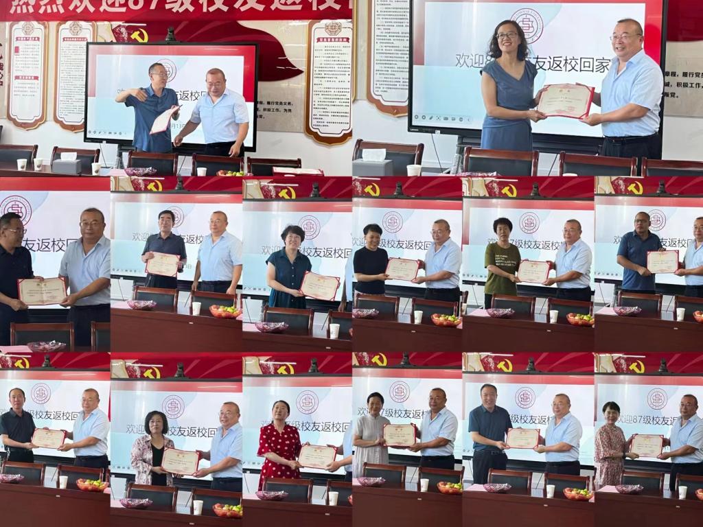 为表达对母校的深厚感情,校友牛俊杰、祁晋喜代表87级校友赠送工艺品,院领导代表学院现场接受捐赠。为全面提升我院师范生综合素质,助力卓越教师培养,学院聘请在一线教育工作的优秀校友为我院“卓越班”特聘教师,并为他们颁发证书。