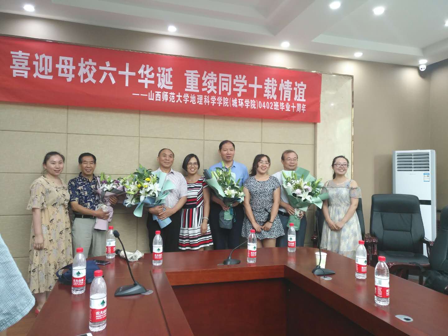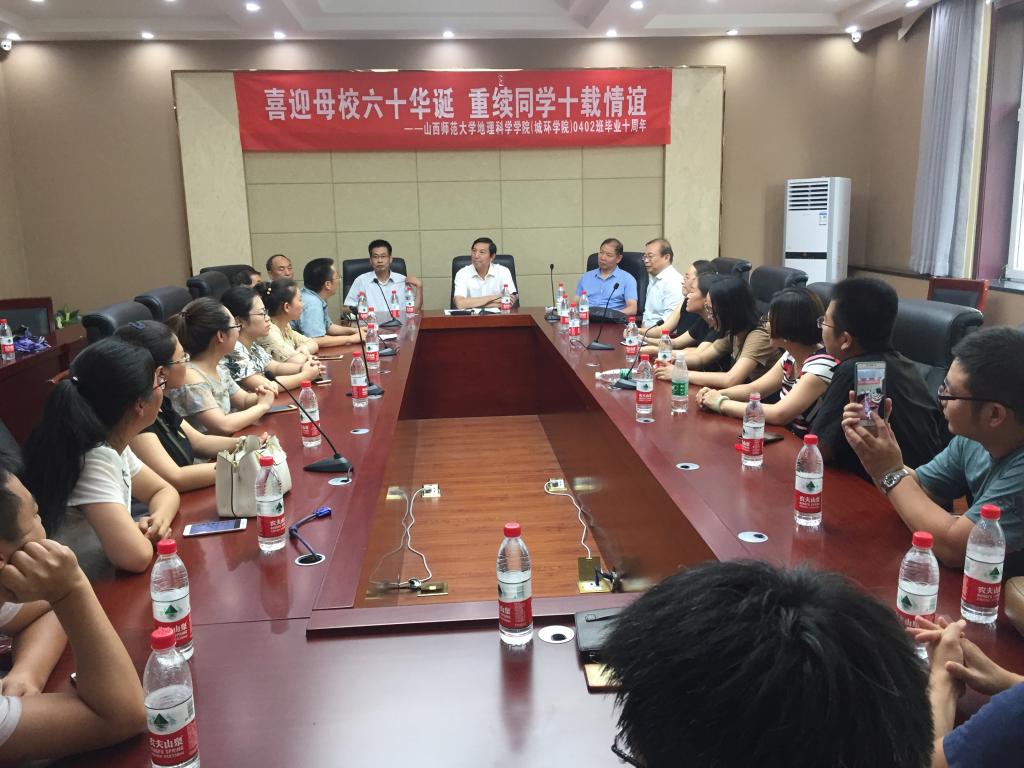 721-22日,必赢766net手机版(原城环学院)学院专业0402班校友重返师大校园,并在学术交流中心第二会议室召开毕业十年同学联谊座谈会。原副校长、山西师范大学校友会副会长兼秘书长原战勇老师、地方服务与合作办公室、校友会办公室主任董俊荣老师,必赢766net手机版院长张永清、副院长张仲伍老师、 0402班辅导员高兰玉老师,教师代表韩军青及040220余名校友参加了联谊会.