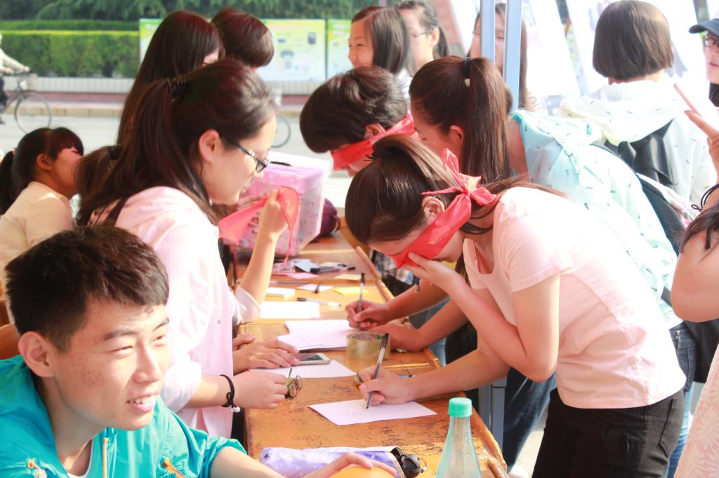 活动“蒙眼作画”“爱的抱抱”更是吸引了一大批同学的追捧。同学们将烦恼写在气球上,与工作人员或者朋友合作将气球挤爆,发泄心中的苦闷。同学们在“蒙眼作画”活动环节中,画下自己的自画像,为活动增添了许多乐趣。