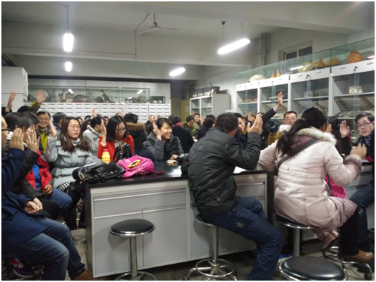 全体教职工对《院长工作报告和2016年津贴分配方案》和《必赢766net手机版“十三五”建设发展规划(征求意见稿)》表决场景