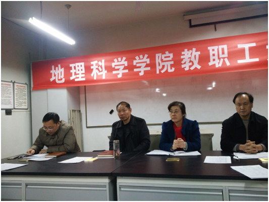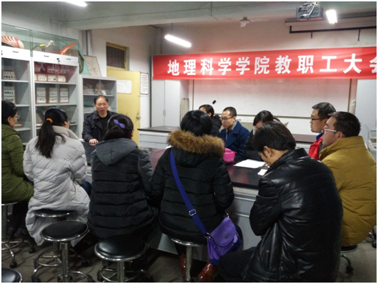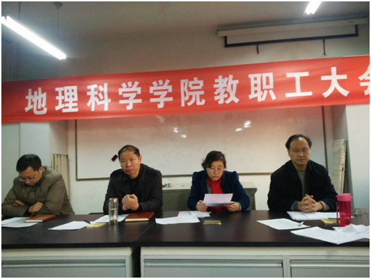 报告明确指出,2017年学院工作思路,加强政治理论学习,以“两学一做”学习教育的成效助推学院各项工作向前发展;围绕学校建设发展和办学定位,稳步实施“十三五” 发展规划;加强以课堂教学改革为中心的教学改革,扎实推进以高水平学科人才引进为突破口的重点学科建设,不断提高教师队伍科研水平;进一步加强硕士研究生的管理工作,力争获得地理学科一级硕士学位授予权;全面做好学生教育管理工作,继续加强学生课外科技创新能力培养,整体提升学生综合素质;扩大对外学术交流,发挥学科优势、服务地方经济发展,实现校地合作双赢,不断提升学院的办学水平和影响力。