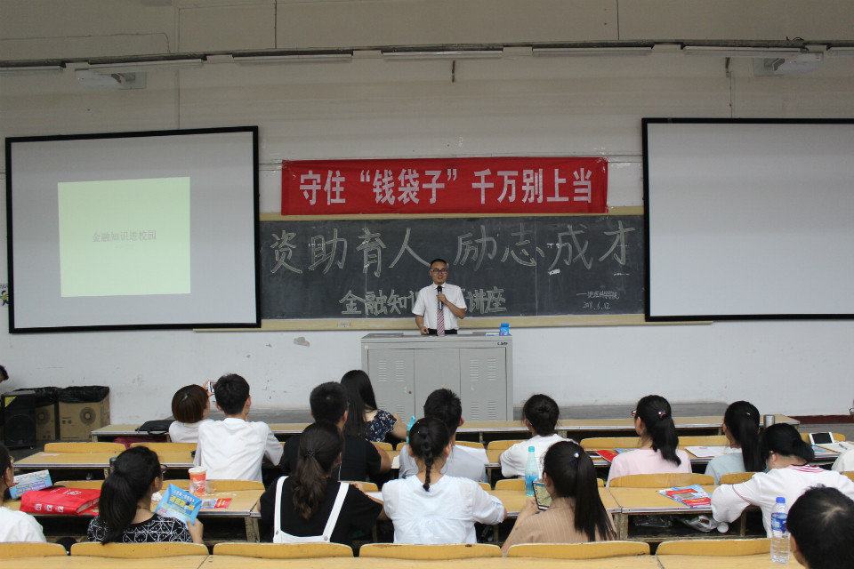 为普及金融知识,提升大学生的风险防范意识,树立正确的金融消费观,6月12日晚上7点,我院在05103教室举办了“资助育人,励志成才”金融知识教育讲座。本次讲座由中国银行秦蜀路支行翟世豪经理主讲,委学生会副主席唐飞主持,我院团委副书记王亚婷老师以及150余名同学了聆听了讲座。