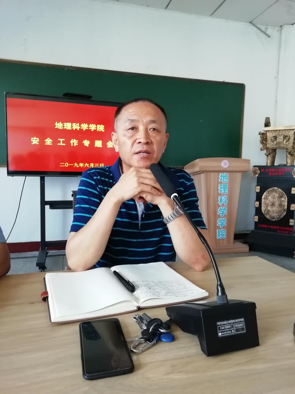 6月3日上午,我院学工组在04618会议室召开安全工作专题会议,院党委书记强汾生出席会议,全体辅导员、各班班长团支书参加会议,会议由院学工组长康永和主持。