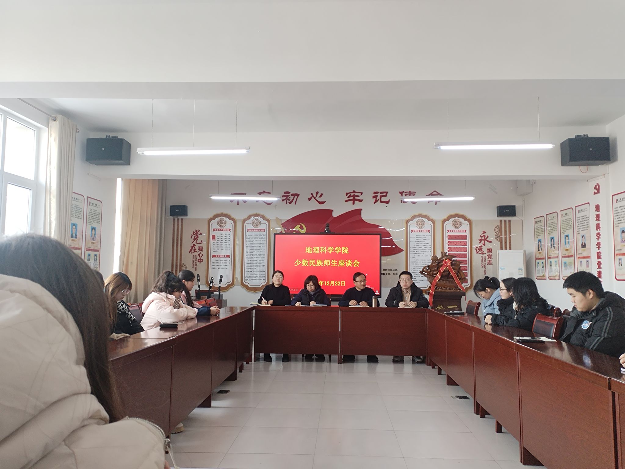 为深入贯彻习近平总书记关于加强和改进民族工作的重要指示,增进少数民族师生之间的交流交往和交融,促进学院内部多元文化的融合与发展,关心关爱少数民族学生的成长。12月22日上午,我院在北区4号教学楼402会议室召开了少数民族师生座谈会。院党委书记刘彦宏、院党委副书记张岩青、专职辅导员谢碟妮、组织员董旭明以及少数民族教师代表李曼出席会议,各年级各专业少数民族学生代表参加了本次会议。会议由院党委副书记张岩青主持。