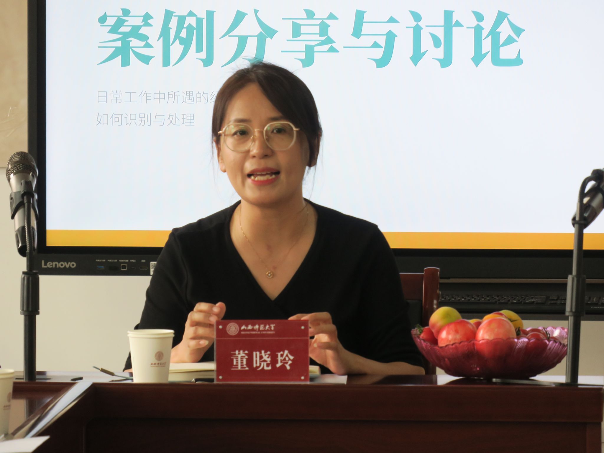 闫丹凤老师做题为《大学生心理问题的识别与干预》的报告,她从目前大学生的心理健康现状展开,详细阐述大学生的心理问题有哪些表现以及如何对大学生心理问题进行干预。各辅导员代表就工作中遇到的特殊学生案例进行了分享,大家共同探讨了针对具体学生心理异常情况的干预和处理等实践措施,在交流中碰撞出思想火花。