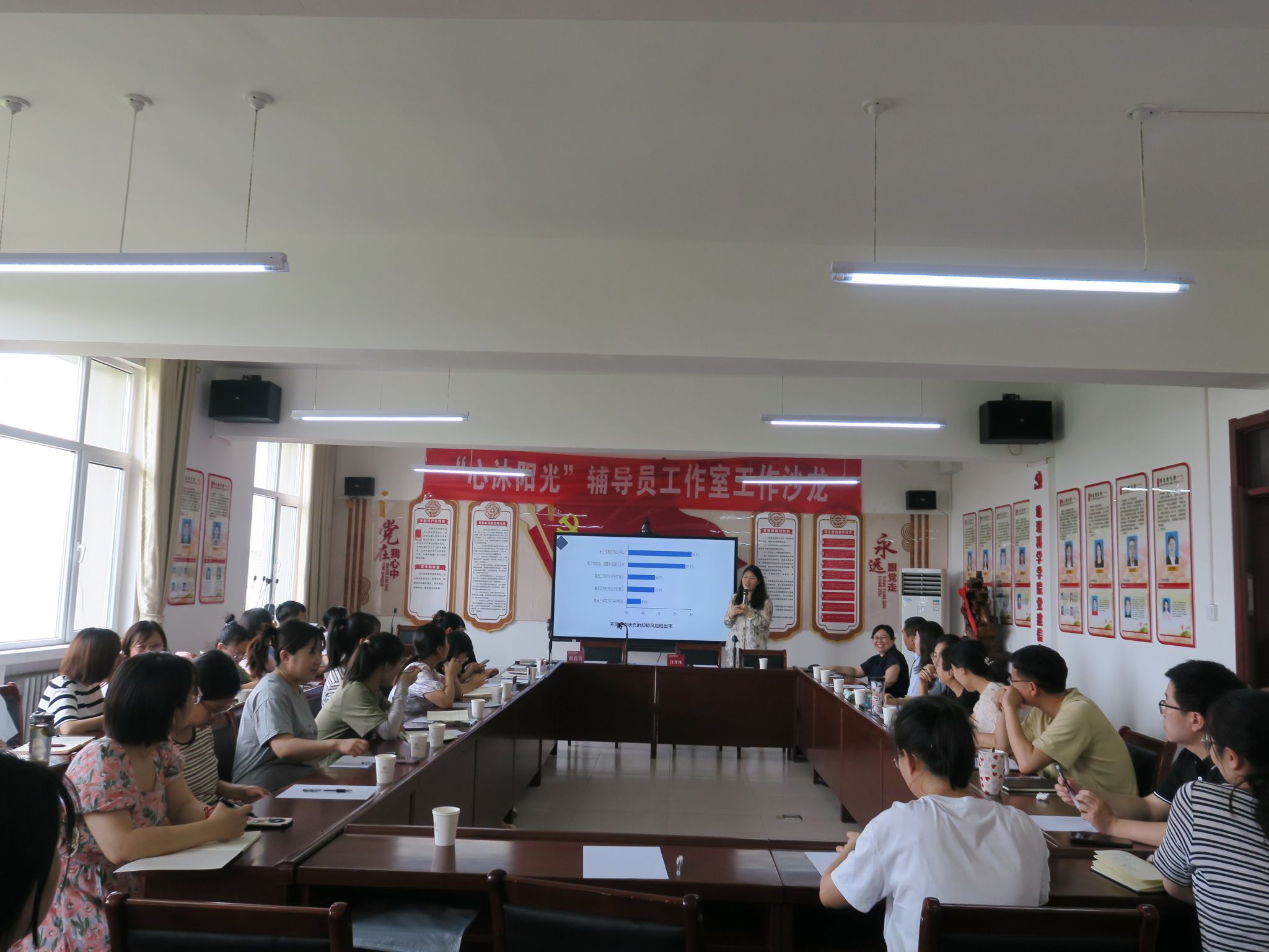 为了进一步提高辅导员在心理健康教育工作中的专业能力,针对学生在日常管理中可能出现的心理异常现象的识别、干预及处理等核心问题,6月20日,我院“心沐阳光”辅导员工作室在北区4号教学楼402会议室举办了以“心理异常学生危机干预与处理能力的实践探析”为主题的第2期辅导员工作室沙龙。本次活动邀请了山西医科大学心理健康教育中心主任、副教授、硕士生导师闫丹凤老师,我校心理健康教育与指导中心董晓玲主任、各辅导员工作室代表等30余人参加活动。