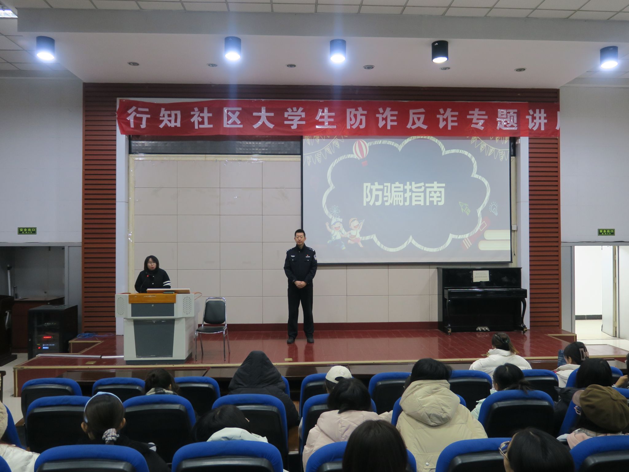 为进一步提高大学生识诈、防诈、反诈的意识,提升识别骗局的能力,切实保障学生人身财产安全,我院于2024年11月26日在南区实验楼报告厅举办了大学生防诈反诈专题讲座。本次活动邀请了太原市反诈宣传民警裴中瑞警官和张洪源警官,裴警官担任主讲,院党委副书记张岩青主持,24级部分同学参加讲座。