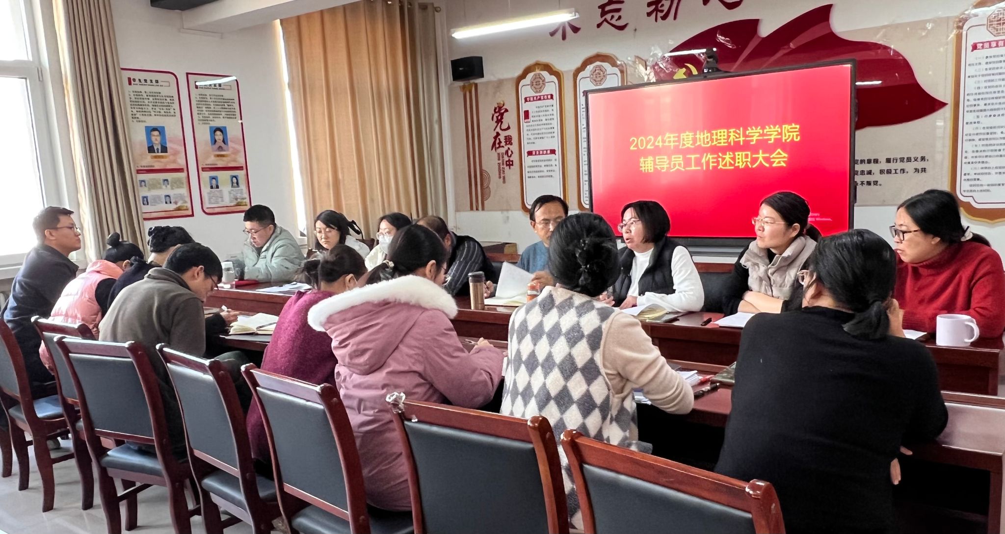 2024年12月24日,我院全体辅导员在会议室402召开了2024-2025上半学年辅导员工作述职大会。党委书记刘彦宏、副书记张岩青一同参会。此次会议旨在全面总结这一学期辅导员在学生工作方面的成绩与经验,同时探讨存在的问题与挑战,并促进辅导员之间互相学习、借鉴,共同提出未来工作的新思路和新举措。