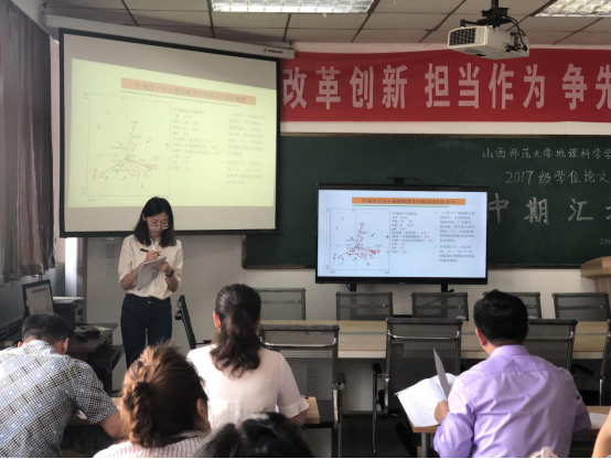 中期汇报秘书王蕾老师对整个中期汇报过程进行时间控制和现场记录。最后,我院张永清老师对中期汇报进行总结,对已有成果的同学进行表扬,未完成小论文的同学尚需努力。作为一名合格的研究生,应始终保持着严谨、努力、上进的态度对待每一件事情。