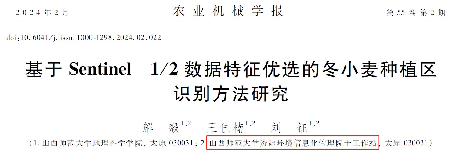 当前的研究中多种特征变量被应用于农作物的识别分类,如光谱特征、雷达极化特征、时相特征和纹理特征等。综合运用多特征可以改善农作物的识别精度,但过多特征变量在一定程度上会造成数据冗余,因此必须对其进行降维,从中选出最重要的特征变量。针对上述关键问题,必赢766net手机版解毅教授团队等人依托山西师范大学资源环境信息化管理院士工作站,将光学和雷达多源遥感数据结合并引入新特征变量,通过特征优选提高了对冬小麦种植区的识别精度。研究成果以第一作者身份发表在《农业机械学报》。