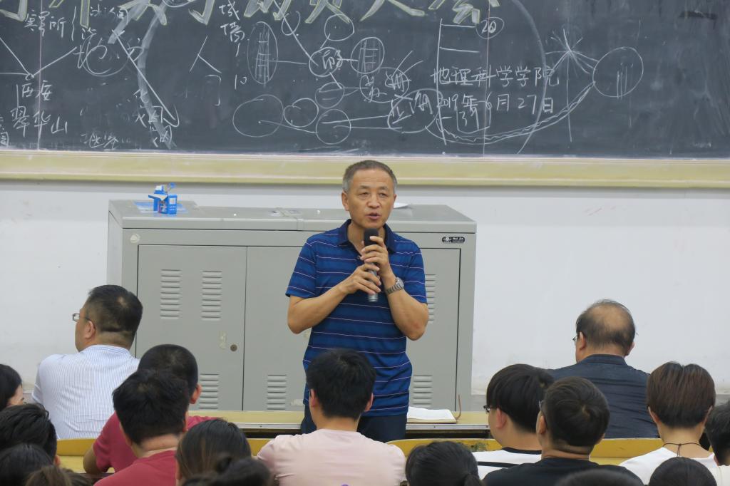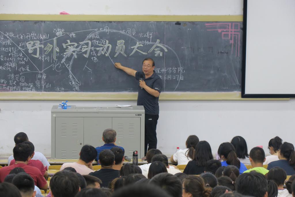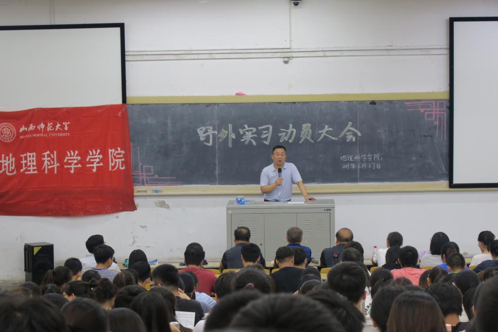 首先,王贵文副院长强调了此次野外实习的意义,他指出,野外实习是践行课堂所学、增强野外实习技能、锻炼自身意志的好机会,是地理专业人才培养的必修环节,所有地理专业的学生都应该掌握的一种技能。他强调,野外实习选取的站点都是地球科学研究某一领域的最先进的、最典型的代表,同学们不仅可以观察到各类地质地貌类型、人文社会经济现象,还可以近距离接触参观中国科学院的各类地理现象的模拟过程,对专业知识的积累有很大的帮助,希望大家做好吃苦的准备、学会团队的配合、圆满完成好本次实习任务。