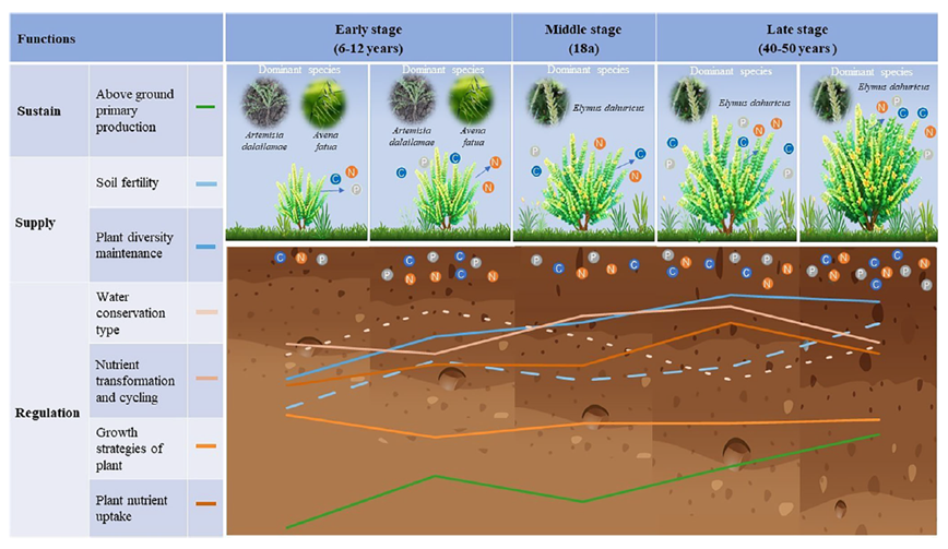 该研究得到国家自然科学基金(42171033, 41807518)、山西省基础研究计划项目(201801D221336)以及山西省高校科技创新项目(2019L0463, 2019L0457)支持,为干旱半干旱地区植被与土壤恢复提供科学支持。