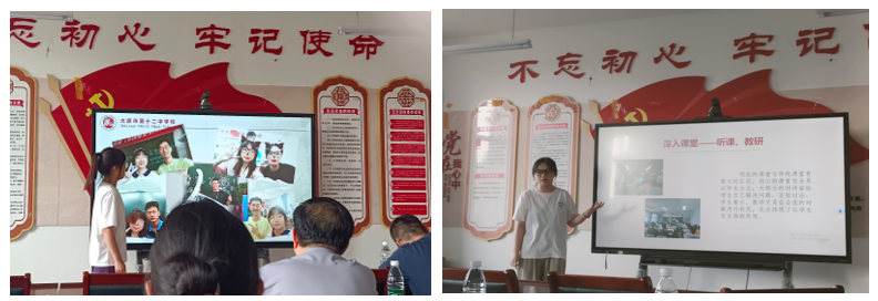 在太原市第十二中学实习的樊研博、吕天钰同学分享了她们在实习学校的教学工作、班级管理工作、志愿服务以及感悟收获。中学实习期间她们参与了学校的劳动教育活动、趣味运动会活动、歌唱比赛以及担任了各种考试的志愿者。她们不仅掌握了很多学习技巧,增强了实践能力,还结交了很多志同道合的好朋友。通过实习,她们更加坚定了自己的理想信念:成为一名优秀的老师。
