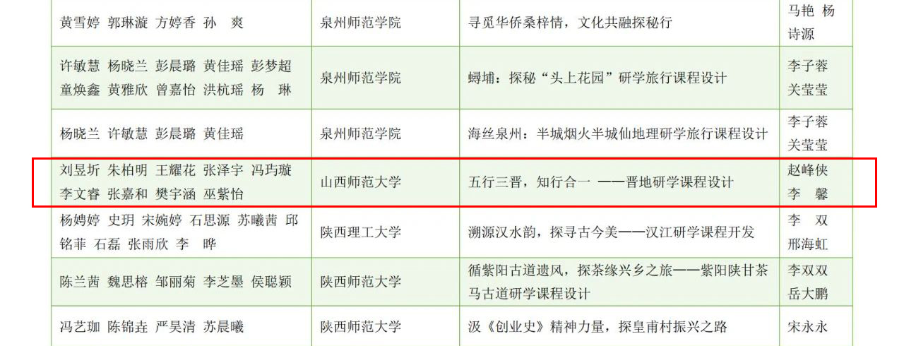 7月23日,2024年“九州杯”全国研学课程设计大赛线上赛评选结果揭晓,经组委会组织骨干编辑和专家对有效参赛稿件采用三审制评选,最终有814件参赛作品获奖(高校组639个,中小学组141个,研学成果组34个)。由赵峰侠、李馨两位老师指导,我院学子刘昱圻、朱柏明、王耀花、张泽宇、冯玙璇、李文睿、张嘉和、樊宇涵、巫紫怡提交的作品《“五行三晋,知行合一”——晋地研学课程设计》从众多的参赛作品中脱颖而出,喜获高校组一等奖!这是我院卓越人才培养计划的又一显著成果。