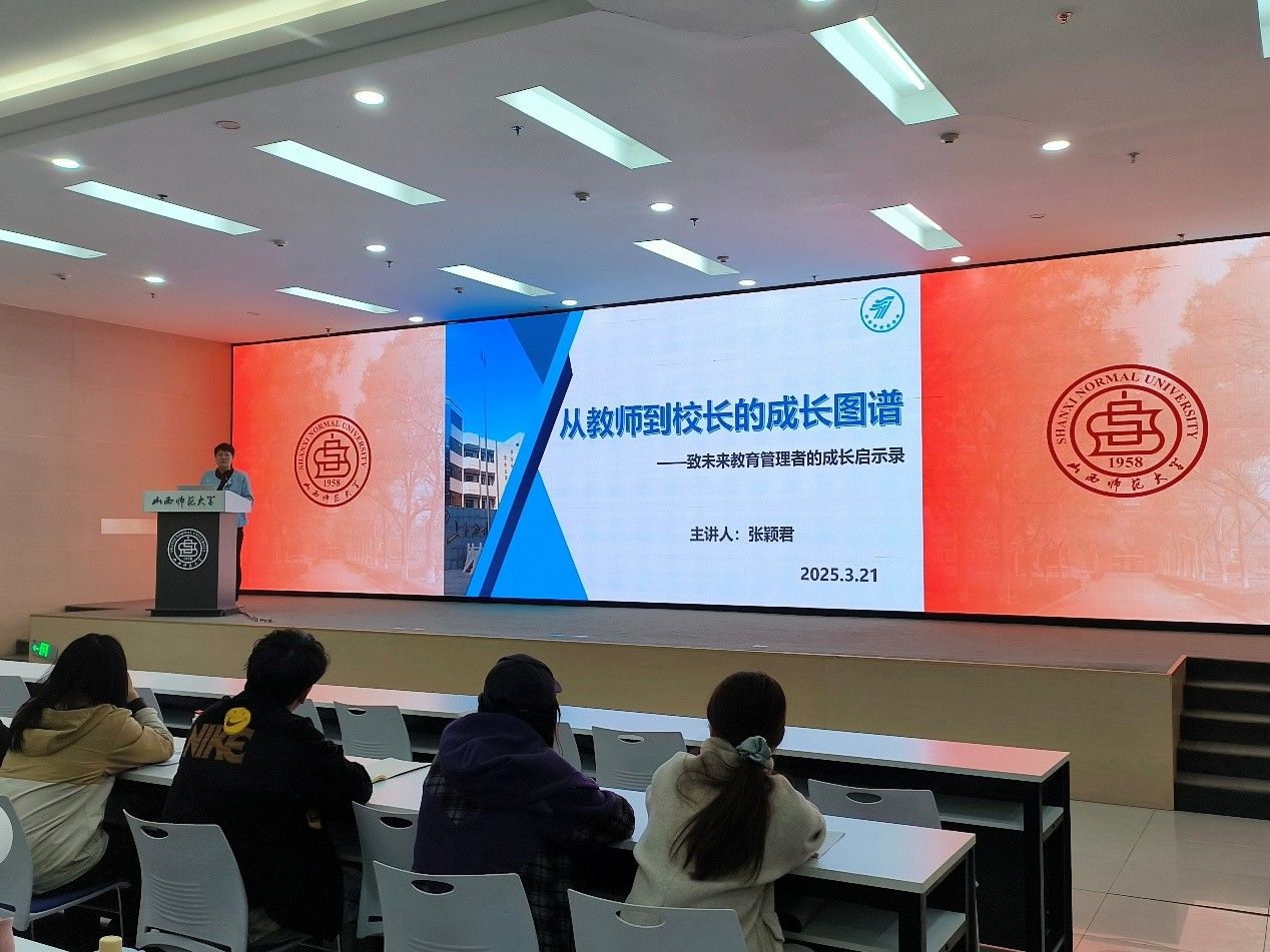 张颖君校长结合自身丰富的教育管理经验,从“读书:从个人修炼到组织进化”、“创新:从课堂革命到治理变革”、“担当:从直面问题到重塑规则”、“执行:从精准施策到文化沉淀”四个方面展开深入讲解。她强调,教育管理者的成长不仅关乎自身发展,更影响着教育体系的变革与提升。她鼓励卓越班的同学们在专业学习之外,要培养阅读习惯,以知识推动思考;在实践中勇于创新,探索教学与管理的新模式;在面对挑战时敢于担当,积极寻求突破;在执行过程中注重细节,以文化沉淀塑造团队精神。